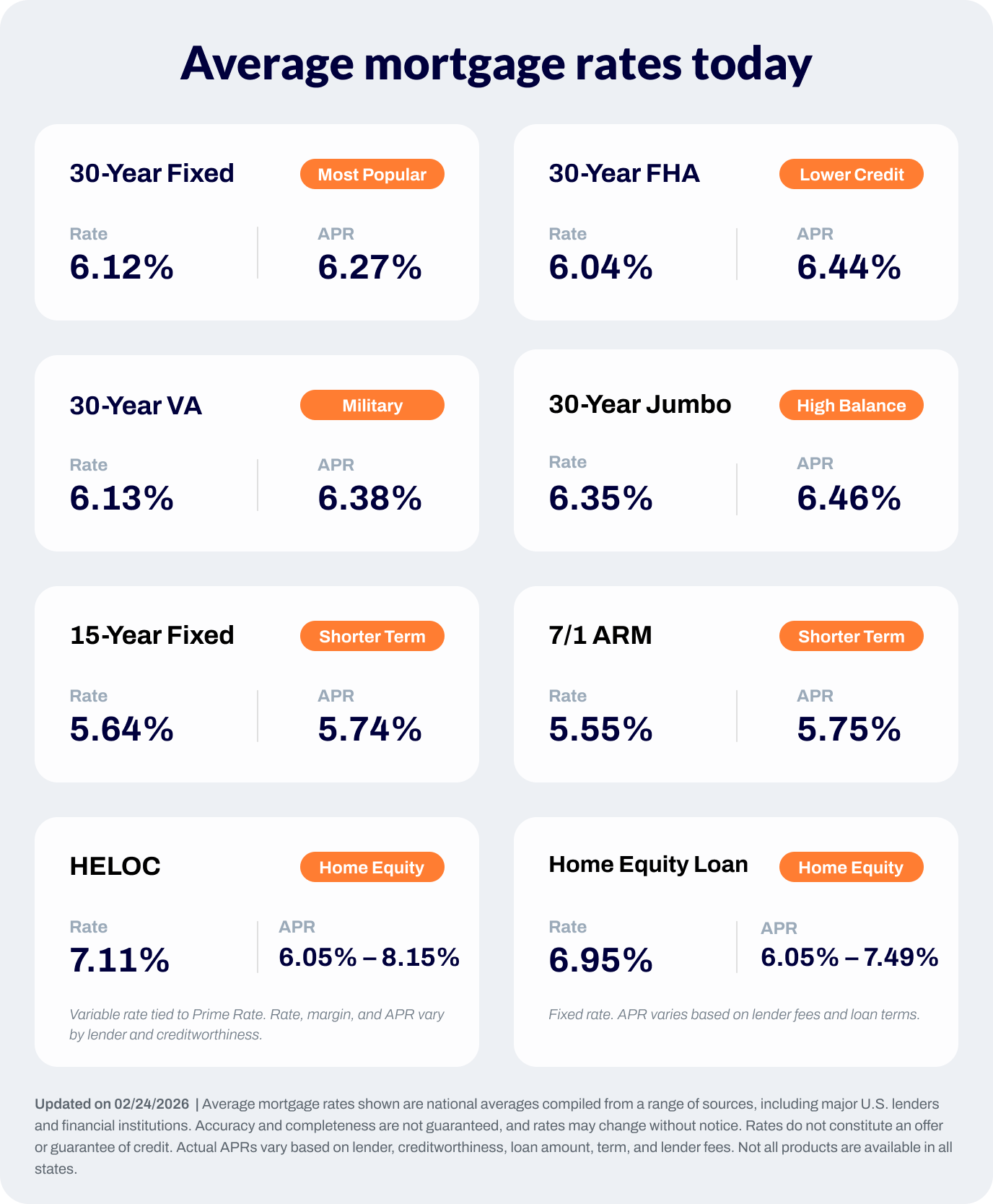 - Mortgage rates updated daily; last updated Feb. 26, 2026